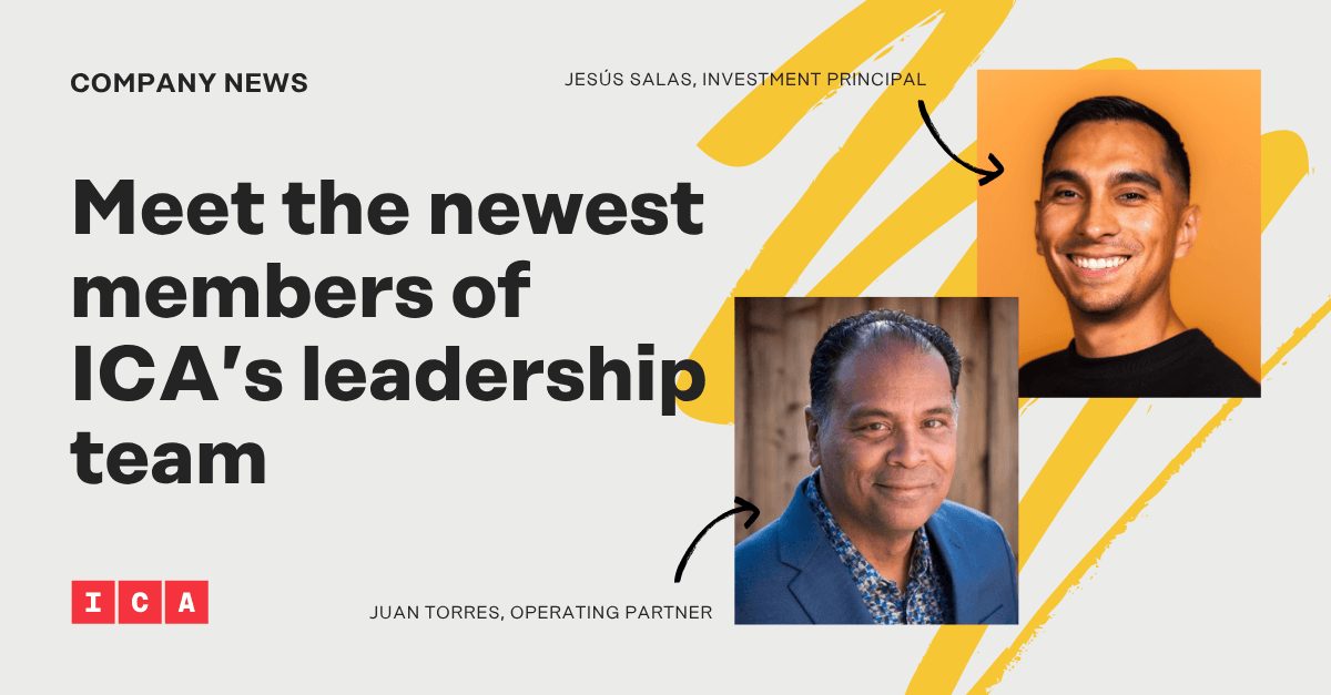 OAKLAND, CA — ICA Fund today announced the addition of two seasoned leaders to its team: Jesús Salas, formerly of Slauson & Co. and Omidyar Network, as Investment Principal, and Juan Torres, formerly CEO of Bellhop, and senior roles at Getaround and Voxy, as Operating Partner for Portfolio & Network Operations.
